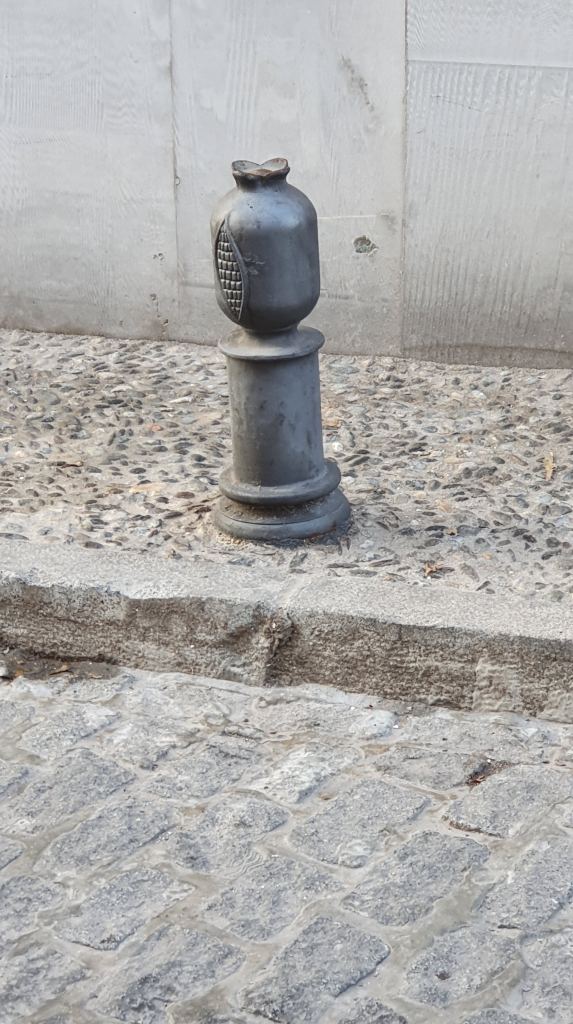 The symbol of Granada is the pomegranate, which is dotted around the city , even on its bollards as a nice touch. The Spanish for pomegranate is of course Granada , so ubiquitous were these fruits , these fleshy symbols of rebirth and the fertility of the Emir’s loins . In a delightful historic twist , these bountiful orbs later gave their name of course to instant-death-lobbing grenades, a slight functional digression .