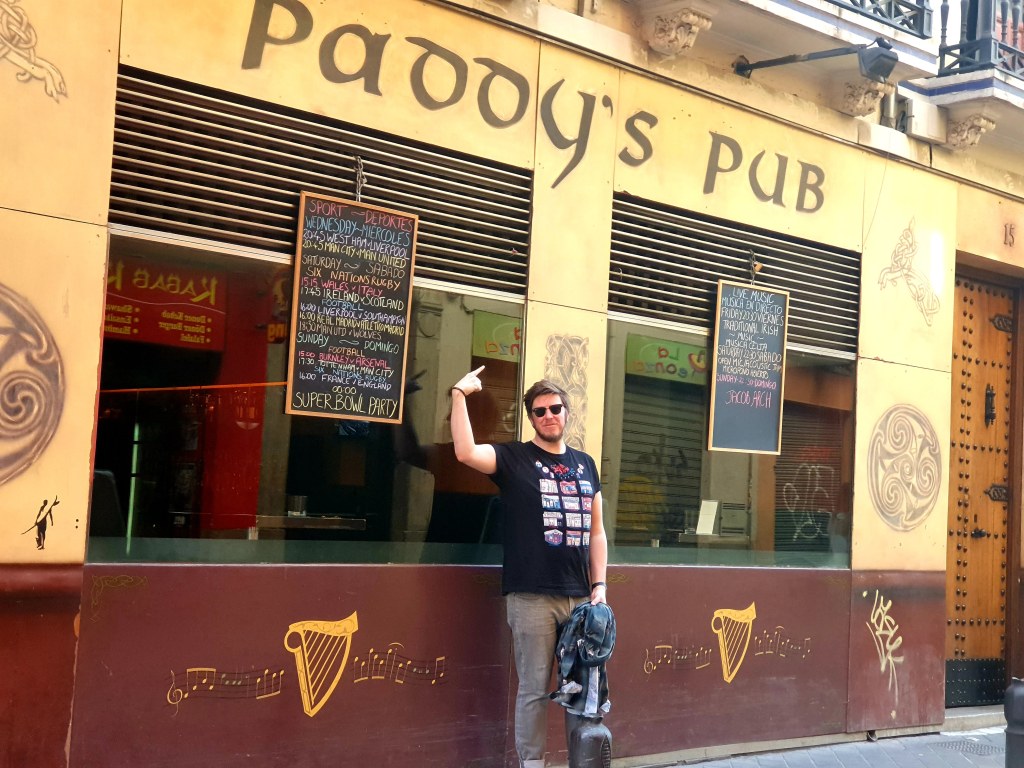 Though the mighty Nasrid Dynasty of Muhammad XII has crumbled and fallen, one Granadian Pantheon stands immortal amongst the superstructures of the city , and that is Paddy’s . (Enjoy this video as we muse upon Paddy’s from it’s exterior) There is a fine line between being a pub and being a room with some seats in it and Paddy’s straddles this unashamedly. Flamenco dances over it , you could say. Paddy’s has three taps , no wine or anything in bottles and has 7 TVs all showing the same rugby game , giving each patron their own personal hi-def screen like it’s a tv control centre in the films where the director is watching everything from every possible angle. Paddy’s pays lip service to the idea of an Irish pub , sure , but it seems they decided half way not to bother and just buy more TVs. Its windows are tinted , for fear that the plentiful Spanish sunlight should interrupt Sky Sports Super Sunday . Paddy’s has a unisex toilet, not, one imagines, as a nod to inclusivity but because one was enough