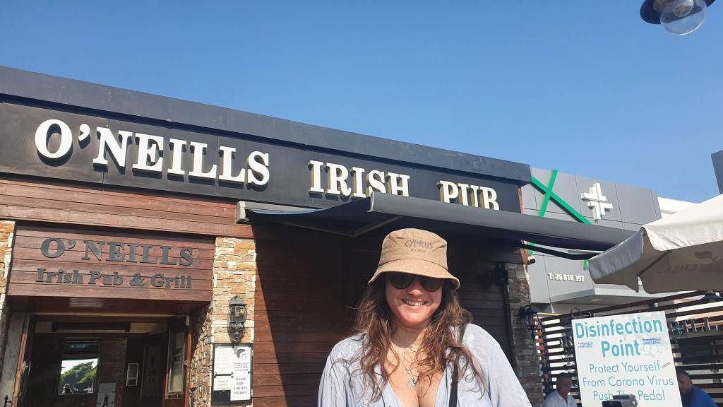 It’s been almost exactly 1 year since our last travels, and to be honest I’d have gleefully cast off any number of my appendages into the waves for the chance to get abroad after a difficult year of non-travel & isolation where all the novelty and self-development of Lockdown 1.0 gave way to the tedious sequels Lockdown 2.0 and 3.0. We choose Cyprus ( relieved that ceremonial mickey- throwing is not a thing anymore) as you’re grand to fly there once you’ve been double-jabbed . So , vaxxed and relaxed and almost one year since our last visitation and with only some sketchy online dabblings in the interim , it’s time to visit our 30th new country and 50th Irish Pub !!! Joining me on this trip to the land of Pygmalion is our own Eliza Dootlittle and cockney poet of repute, Bella Day, who’s odes are scattered whimsically throughout this passage .