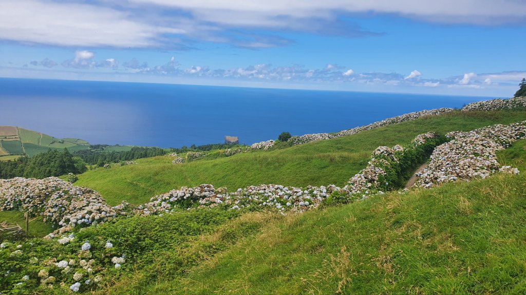 So what are the Azores for ? Well , my god, they are green . It does look like how paradise would appear to an Irish man ; due to its setting, temperatures stay at about 23 degrees all year ; you get sun and a bit of rain almost every day , turning the place into a marvel of nature. The range of greenery is unreal, and while at times resembling Ireland with its stone walls, cattle farms and peaks, there is a tropical feel to the place. Hydrangeas grow wildly on the roadsides , and volcanic craters litter the landscape with their fertile soil a haven for farming and wildlife. One such village , Sete Cidades is noted for its Instagram-breaking viewpoints and is a grand spot for a couple of days hiking. Interestingly, and telling of the Azore’s nascent tourism industry, a majestic hotel , The Monte Palace lies abandoned atop one of the craters , built in 1989 on anticipation of flocks of tourists that would never arrive. If you fancy a bit of URBEX , you can pop around the back and wander around pretending you’re in the Shining to the murmur of dripping roofs and countless drones being operated by idiots making YouTube content.