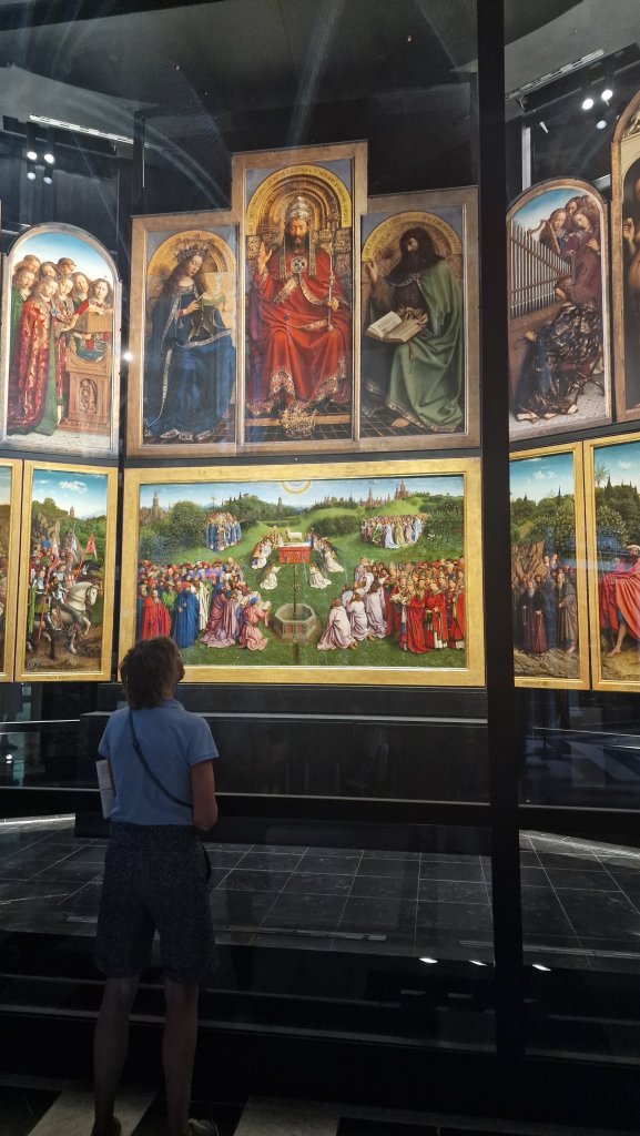 One of Ghent’s most famous sights is the Flemish masterwork, the Ghent altarpiece – one of the most storied paintings in European History. We take an Augmented Reality headset tour to see it, which gives a slight headache as I’d had my reality severely augmented the previous night by several glasses of the Trappists finest. The painting, known as the “Adoration of the sacred lamb” was stolen by Napoleon, then Hitler, found by the Americans, but with panels of it stolen by some roguish Ghentlemen and according to legend is hidden under some floorboards somewhere in the town. Hubert van Eyck “maior quo nemo repertus (greater than anyone)” started the altarpiece, but it was finished by his bro Jan van Eyck, known as “arte secundus (second best in the art)” … Bit harsh on Jan there. I recommend the tour – you can see the restoration work up-close, including “the lamb with the face of a man” but don’t ruin it by repeatedly singing that particular phrase in your mind in a Morrisey voice like I did .