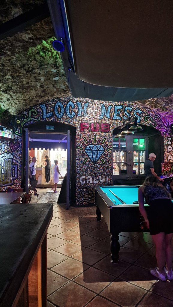 In the midst of these identity crises, we have perhaps the apt “Loch Ness Irish Pub”.  Expectations for this one were mixed to be honest . To help explain this anomaly, we do know the Roman word for the Irish people was Scotti ,until years later it became exclusively for our Jockish cousins .Perhaps this pub is a nod  to this Dal Riada, the joint kingdom spanning Ulster and the West Highlands of Scotia in the early Christian period? Perhaps not. So amidst all these identity crises, perhaps Loch Ness can be Irish?  After a mild case of sun stroke during a jaunty hike, I return to Calvi to locate Loch Ness. Alas, it appears to be closed , proving as elusive as the beast what dwells in its namesake. However persistence pays off, and on return on day 2, it is indeed open! What to say about Loch Ness ? How to sum up its visage using mere words?