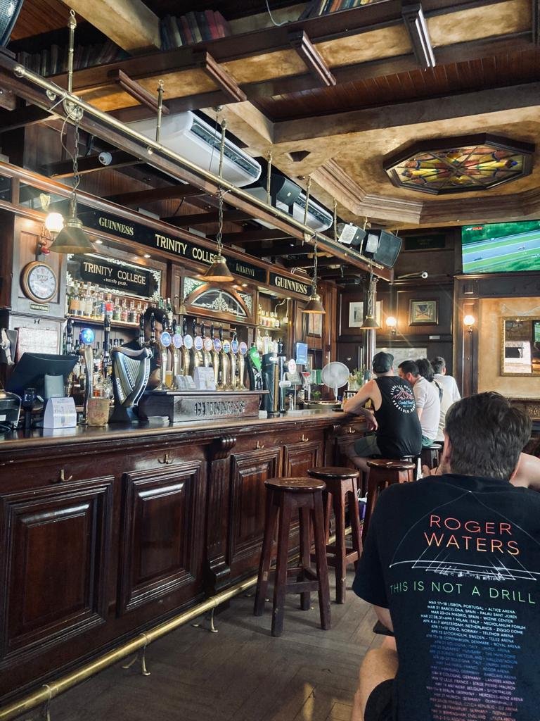 First up is the Abbey theatre, a pub named after the Abbey Theatre covered in mementoes and posters from yes, the Abbey Theatre. The Abbey Theatre is a solid 3/5 , its fine but doesn’t linger in the memory and so the show must go on. On leaving the Abbey Theatre, before the next stop, Scholar’s Lounge, you get to stop off at the Largo Argentina, to see the spot where ( Spoiler Alert) Julius Caesar was merked repeatedly. This is the wonder of what I do, combining  classical high culture with the mundane; one moment observing the power of  Imperial Rome, the next listening to  Maniac 2000 in the bosom of my culchie brethren. And speaking of plebs rustica , there are many , as today is a momentous day- the Finale do Campione D’Irlanda (All -Ireland Final) between the forces of righteousness, Kerry and the evil empire of Dublin. Both of the first two pubs I reach, in preparation for the match, have RTE2 on , showing what appears to be the 1994 remake of the Little Rascals. This adds a layer of confusion to proceedings as it is beamed onto big screens , perhaps leading foreigners to believe that the watching of Little Rascals is key to Irish culture and a central pre-ritual of Gaelic Games. Scholar’s lounge is the biggest and brashest pub of all, and is full of real life Irish people waiting for the game .” Watch how they pull that Guinness, its pure shite” warns a pinkened, middle-aged, -Dublin -Jersey wearing centurion. Scholars has won a couple of Best Irish pubs in the world awards , which I have ever heard of (narrowly beating Loch Ness ,of Calvi) . It’s a 3.75 from me.