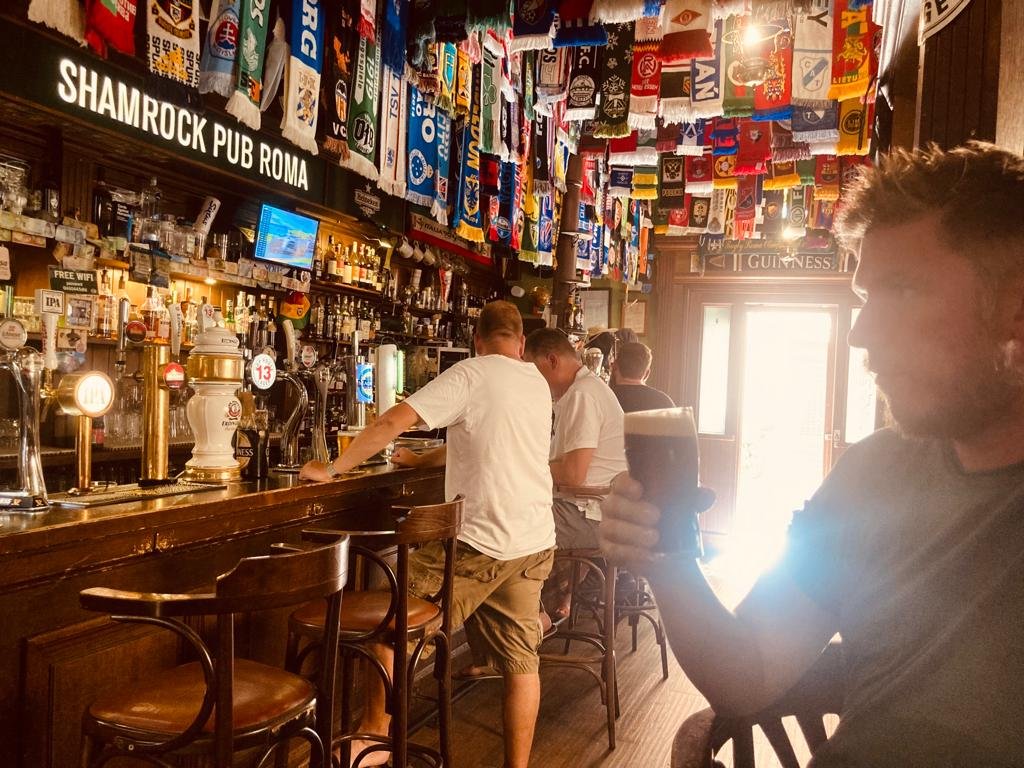 The colosseum is thronged, but to lessen the tourist numbers ,on the hour, two lucky ticket holders are chosen at random to fight to the death for the benefit of the organised Summer School trips, with dozens of under10’s baying for blood and the clash of steal and bone. Or so I suggested to the tour guides. Shamrock Bar is an excellent bar, with a nice unassuming entrance and a cascade of football scarfs from various visiting teams . I have a piccola Guinness and its tip-top, but there is one crucial error- instead of showing the All- Ireland Final, all TVs are showing Formula 1, the most boring sport of all time and a marked step down from the sheer passion, excitement and drama of the Little Rascals remake. This mortal sin has to count against Shamrock Bar , so I award it a 4/5 with a thumbs up so it may live to fight another day.