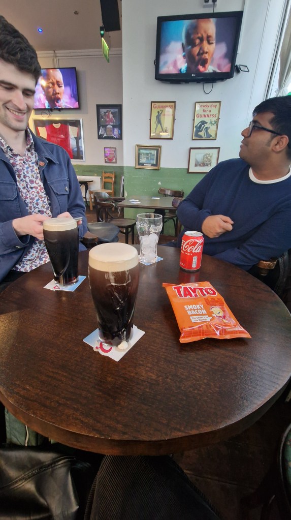 Dismayed by this, for the next game, I decide to watch as God intended. In a pub surrounded by people disproportionately invested in it. So my friend suggested a nearby Gooner pub, the Florín on Holloway Road, North London, a stronghold of Arsenal, the historic team of choice of the London Irish .