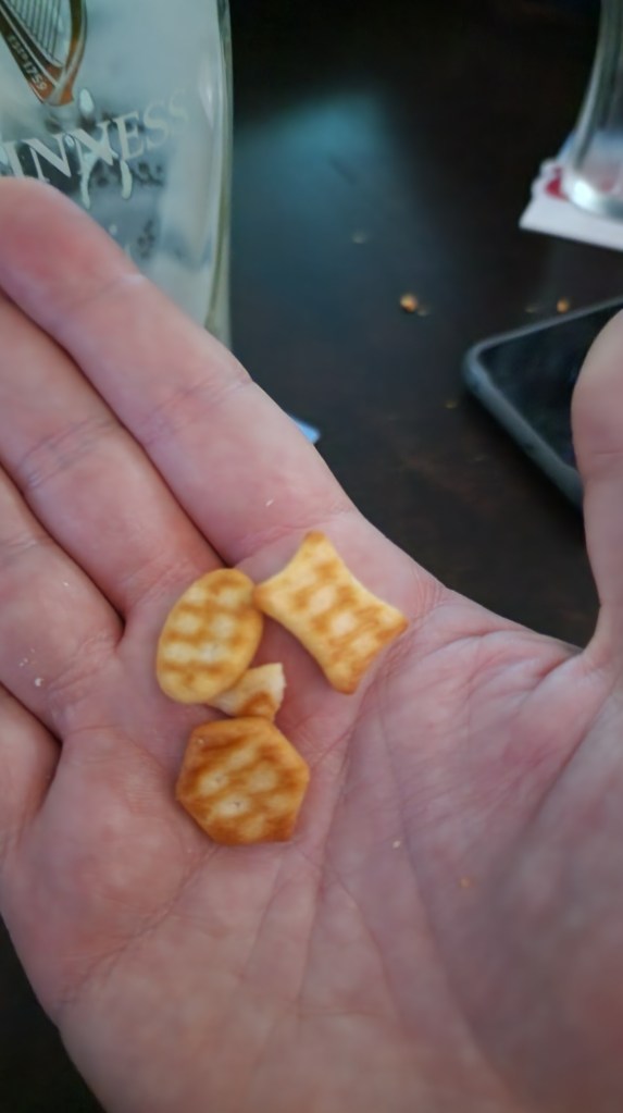 The pub itself is a free-standing building consisting of one big saloon like in the Wild West. Once the football commences though, it is transformed into a cinematic football experience, lights down low, complimentary cracker platters set out, the pool table covered. Everyone is facing the screen, the atmosphere only slightly dulled by Tom postulating on the age old question whose success was more hard-won – The Beatles or Taylor Swift?