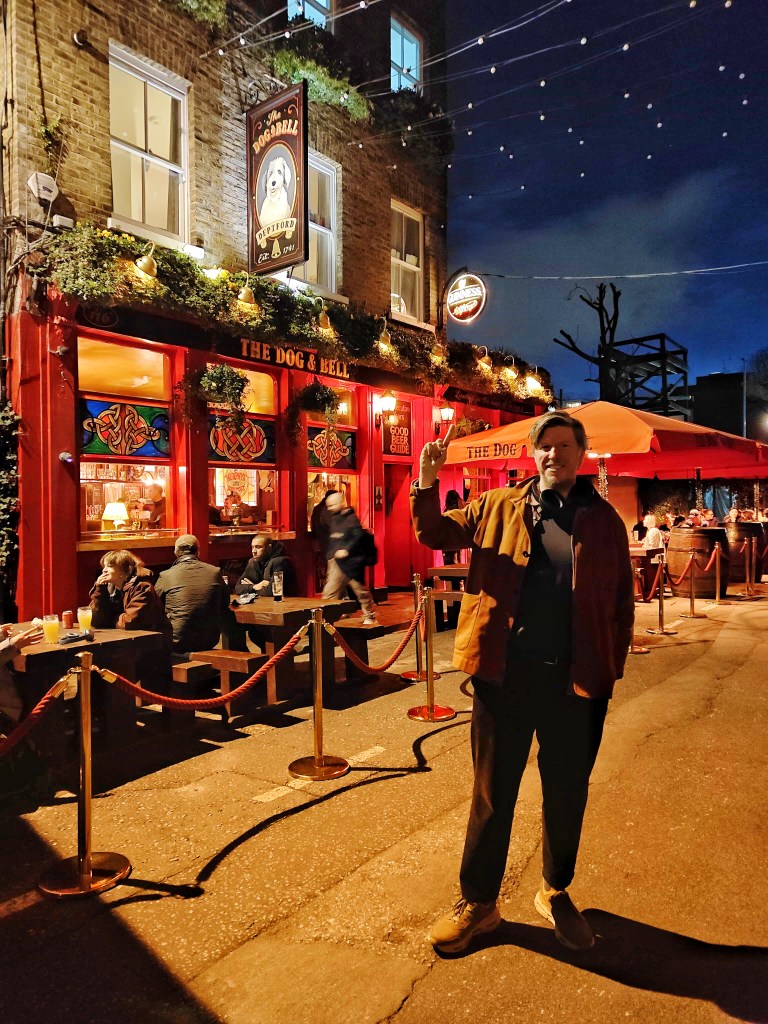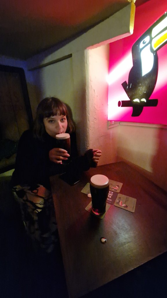 After wandering through nondescript suburban South London, you come across what appears to be fairly standard looking corner pub .Tellingly, the eye- catching Guinness mural on the gable wall hints at the pleasures that may lie within. The Blythe Hill tavern is off to a flyer from the get go. The layout of the pub pleases me- you have various lounges and salons all within reach of a bar. The barkeeps all have nice ironed white shirts – a touch of class. Despite there being a rowdy rugby game going on, I’m never left more than seconds waiting at the bar before a pint is firmly thrust into my hand . The clientele is a true mix; rugby fans,- jubilant Italians, sad, sad Welsh people, aul lads watching the horses, baseball-capped-mustache bros and a group of regulars whom the owner goes over to have 60 seconds of designated craic, like an absolute pro . It’s the ideal location to record a podcast in , which I did do with top lad Brinsley mcNamara off of Weird Ireland . You can hear the full recording of our very enjoyable chat here interrupted only occasionally by a wayward corgi and me eating taytos directly into the mic. The Blythe Hill Tavern is as good as they say, a mighty mighty pub like its neighbour Skehan’s , one that’s a space for all, be they hipsters, aul lads watching the horse racing or 2 fellas recording a podcast in the smoking area.