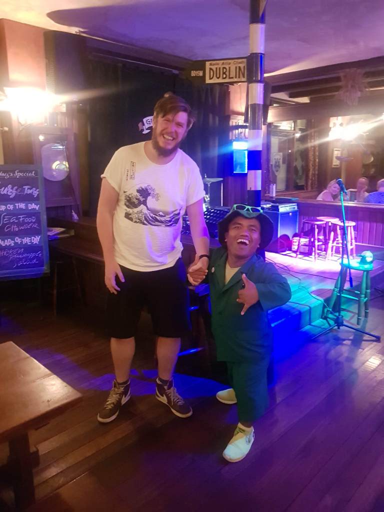 Still holding up the rear ! Full marks for location; hidden on the Australian island of Bali , somewhere in a gated residence is ‘Gracie O Reilly’s’ . Gracie’s is nothing to write home about, save for the fact it is frequented by an actual Balinese leprechaun called ‘Famous Seamus’ who reads the bingo numbers in a flawless Northside Dublin accent ( see pic above ; Seamus is on the right) .Which I wrote home about! One hopes he is still there, reading an unending cavalcade of bingo numbers into all eternity like an Ingmar Bergman scene. Read more, here:https://publicanenemy.com/2018/0