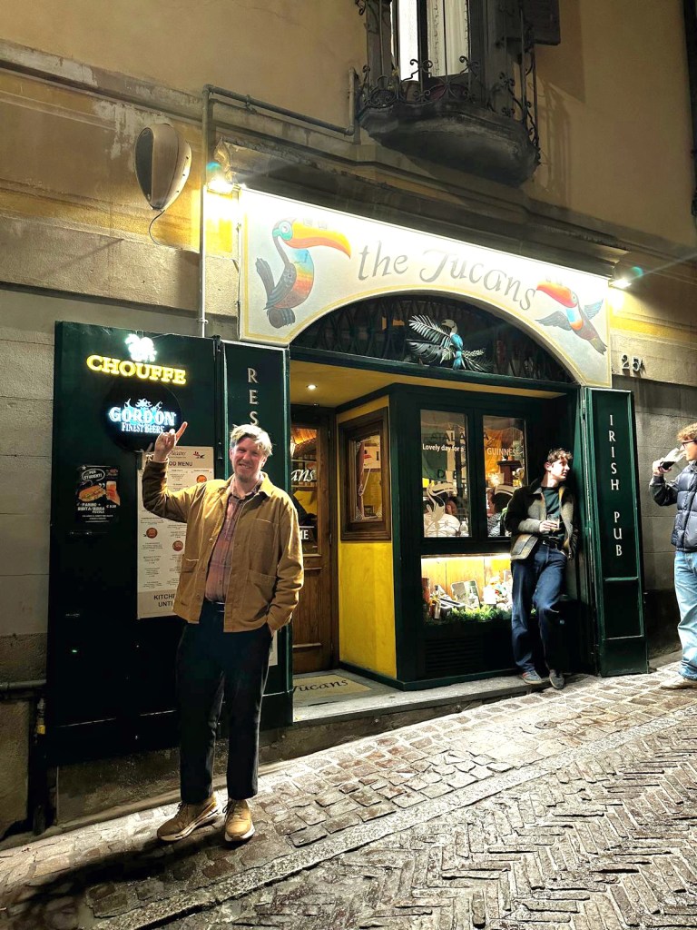 Up here among the alcoves is The Tucans, a proud proponent of the Irish-Inspired -but -not -owned Pub , one that can be viewed with skepticism by both fools and bigots. It does vex me so when people proclaim with glee they’d never visit an Irish Pub abroad, such is their willingness to ingratiate themselves into the fabric of the community over the course of their long weekend . The Tucan’s , in reality is a place that is frequented entirely by locals, whereas that spot in the main square where you order your spritz for £12 is actually the rampant tourist spot. In the Tucan’s, we meet Massimo, – a truck driver/ artist (or Camionista/Artista as he says) , not a combo you usually find. “ This place” he says in his hesitant English, after seemingly plucking the words out of the sky , (and attempting to say it initially in French to little success), ” is my home. These people” -he gestures at the barstaff -“my family” . Massimo doesn’t really drink Guinness though, he’s a fan of the Belgian Beers , exclaiming: