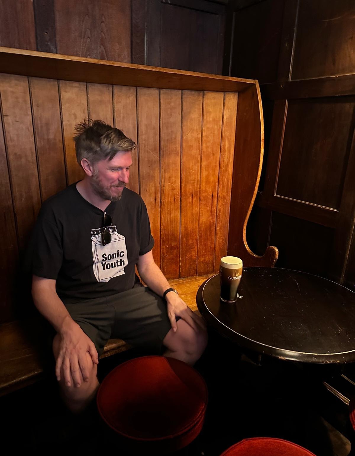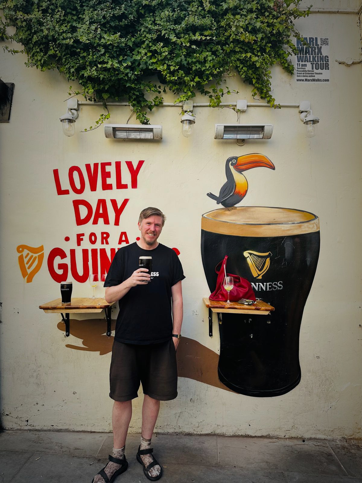 It is with sadness that we learn of pubs across the UK and Ireland closing at a furious rate. What is the solution? Diversify into Small Plates??? Get the Youth to consume more booze, the selfish swine? Well, whatever the formula is , Angie’s in Westbourne Grove has it. Sub £5 Guinness in London is commendable, and this is truly a Free House for all the community. It hits that magical Pub sweet spot- there are locals / regulars galore, young fellas after playing football, couples on dates, students, the whole swathe of humanity in one faux Georgian Free Room. Wall tat alludes to Irish Sporting Heroes and to musical demigods of distinctly non-Irish origin like Bowie, Marley and the Goat, Hank Williams. A massive screen makes it ideal for partaking of the football, in this case Celtic vs my fav Team Kairat Almaty. I come from a long line of the Tralee Supporters of Kairat Almaty. The dull game is enlivened by the presence of 2 absolute gents, one Geordie and one Mackem, and we quickly get into rounds as we discuss Killarney, Isak the traitor, and folk horror in the context of Thatcher’s decimation of the Industrial Landscape of the North East. And a friendly sentient lift that drops you not at the floor you want, but the floor you need ° ™ . This is the wonder of the pub, a place where you can watch a 0-0 draw while simultaneously learning about Roko’s Basilisk. Pic at the end of these gents. On a Wednesday, the pub is full of punters, which is a soothing sight. Many times, of a Friday, I’ve been to visit boozers of Irish lore in Cricklewood and Camden, only to be shocked at the emptiness of these once- thronged halls. As Thatcher tore the soul out of once thriving communities, maybe this is the tail end of that same process , where the neo- liberal locusts swarm over the few remaining community assets- the Public House. But hand’s off Angie’s .