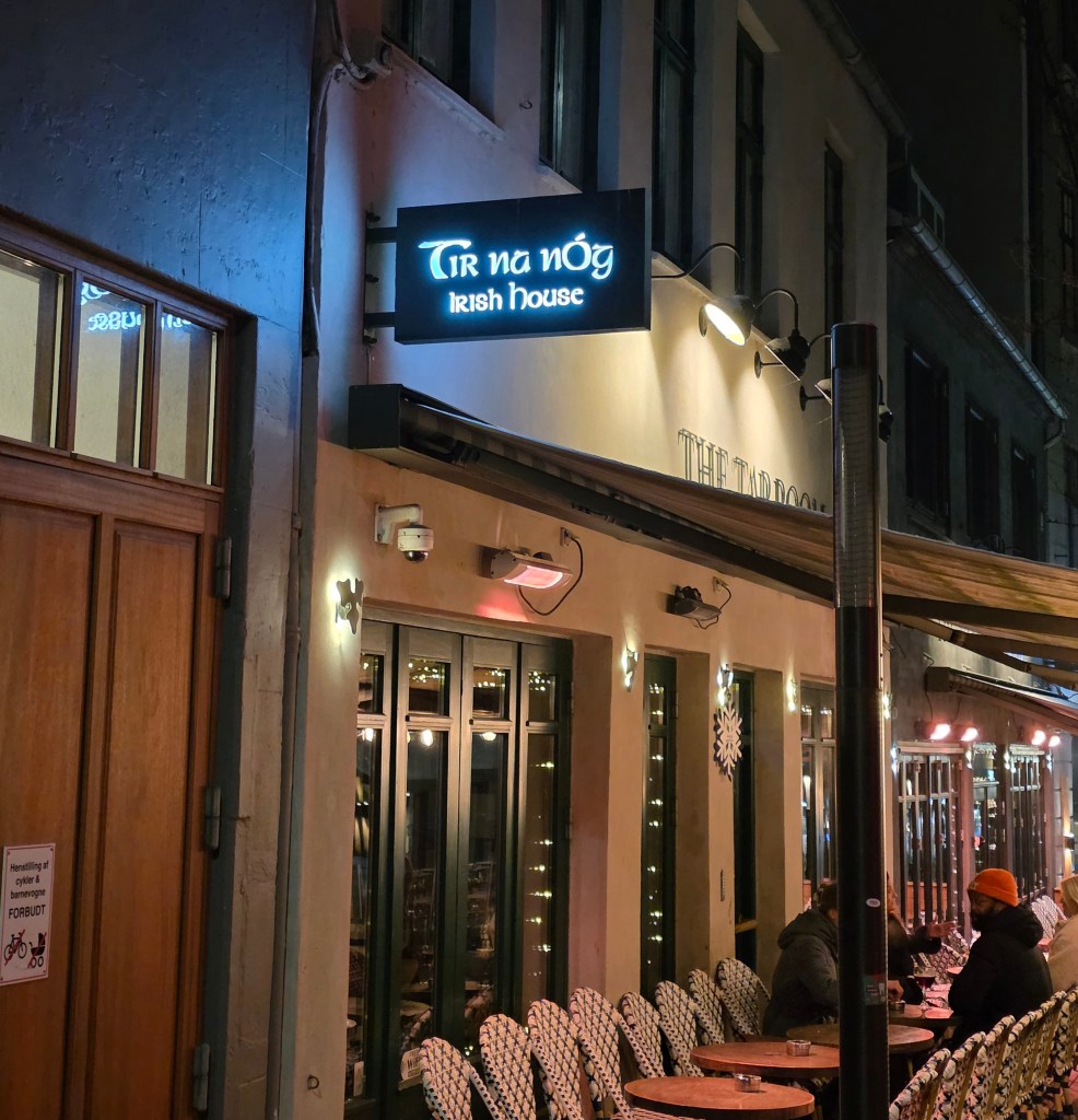 Casually, we can dismiss both Waxies Pub and Ye Old Irish Pub as being surplus to requirements. Was it not Hamlet himself who said, “There is nothing either good nor bad, but thinking makes it so”? Well, I think they’re shite, based on my initial observations. So we move on to the largest and most glamorous of the Irish pubs in Aarhus, the one with the most promising name — Tir na Nog. Tir na Nog means the Land of Youth in Irish, a kind of utopia located in the ocean where eternal bliss was guaranteed. Legend has it that Oisín, legendary warrior of the Fianna, travelled to Tir na Nog and became king by running up a hill or something, Kate Bush-style. After about 300 years, he grew bored of this land of plenty, which is fair enough, and he returned home. Alas, due to science, were he to fall off his horse back in our world, he would age instantly and die. Lo and behold, he’s back for five minutes, someone offers him a crisp or something, he falls off his horse and crumbles to dust. Hopefully a similar fate will not befall me when I leave Tir na Nog this evening.