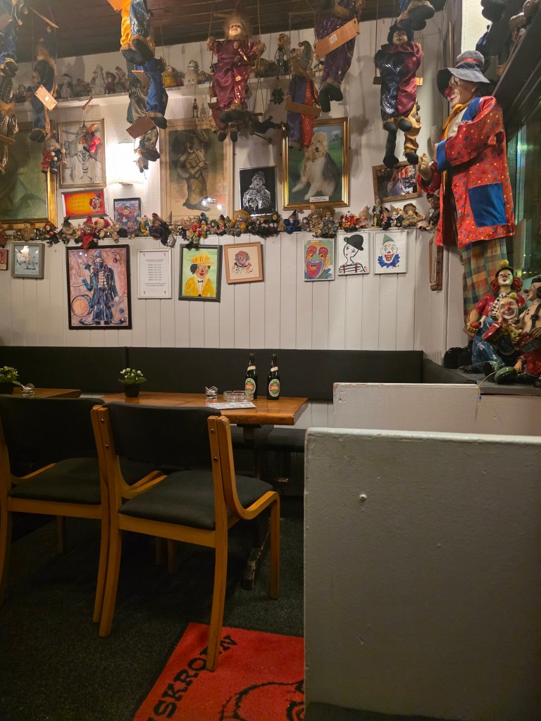 But what is happiness personified? Why yes, you’re right- it’s the noble circus clown of course! Say the words Circus Clown Bar to the average punter and you’ll be met with a surprising and understandable amount of revulsion or sheer terror. A clown bar — that is, a bar full of and decorated entirely with (and by?) clowns — is the diametric opposite of the minimalist Scandi design ethic, in theory. And yet, next it is to the Clown Bar we go. Perhaps this likely spot is a key source of the city’s mirth and joviality. You can just imagine the scene in an Aarhus therapists office: